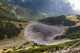 The Salzitsa Lake (Bulgarian: Сълзица), also known as Dautovo Lake (Даутово езеро) is a glacial lake in the Pirin mountain range, southwestern Bulgaria. It is situated at an altitude of 2,341 m in a small cirque at about 1 km to the northeast of the summit of Dautov Vrah (2,597 m).[1] It is the northernmost lake in the mountain range.[2]