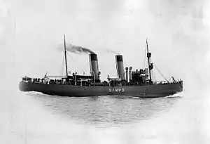 Engines: Two triple-expansion steam engines, 1,200 ihp (890 kW) (bow) and 1,400 ihp (1,000 kW) (stern)