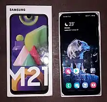 Samsung Galaxy M21 is a mid-range Android smartphone developed by Samsung Electronics as a part of Galaxy M series smartphone lineup for 2020. It was first released on March 18, 2020 as the successor to the Galaxy M20 and Galaxy M30s. It comes preinstalled with Android 10 and Samsung's custom One UI 2.0 software overlay, which is now upgraded to Android 13 with One UI 4.1.[1][2]