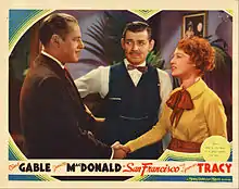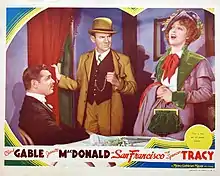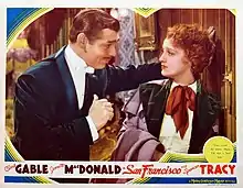 San Francisco is a 1936 American musical-drama disaster film directed by W. S. Van Dyke, based on the April 18, 1906 San Francisco earthquake. The film stars Clark Gable, Jeanette MacDonald and Spencer Tracy. MacDonald's singing helped make this film a major hit, coming on the heels of her other 1936 blockbuster, Rose Marie.
