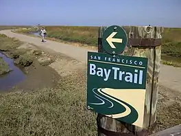 ![]() San Francisco Bay Trail in Hayward Regional Shoreline showing trail marker | |