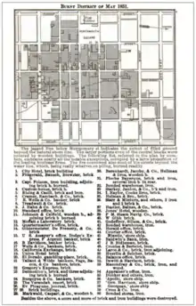 Around 11 pm on the night of May 3, 1851, a fire (possibly arson) broke out in a paint and upholstery store above a hotel on the south side of Portsmouth Square in San Francisco.[1][2][3] Fueled by increasingly high winds, the fire was initially carried down Kearny St. and then, as the winds shifted to the south, into the downtown area, where the elevated wood-plank sidewalks provided extra fuel.[1][2][4]
