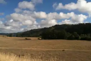 The first European land exploration of Alta California, the Spanish Portolà expedition, passed through the area on its way north, camping for three days near today's San Gregorio, October 24–26, 1769. Franciscan missionary Juan Crespi noted in his diary on Tuesday October 24, "…we came to a small valley where there is a good-sized village of very fine, very well-behaved, fair and beaded heathens who received us with a great deal of hospitality and pleasure. They have the village close to shore, about a half league from where we stopped, where they have a great many grass houses at an opening at this valley here makes onto the shore; they are living now in the valley. Here in the valley there is a great deal of soil, and a stream in midst with a good-sized flow of delicious water, on its way to empty into the sea at where they have the village. A good amount of irrigation could be managed with this water; there are, in addition to the alley, the ranges of knolls, all of them good soil for dry farming. Wood there is none of; the mountain range, however, lies nearby with a great deal of savin timber. A good spot for a good-sized mission; I named it Nuestro padre Santo Domingo, Our Father Saint Dominic." [5] No mission was ever established here, however. The string of Spanish Missions established over the next 50 years followed a more inland route through San Jose. During the Mexican era, the area was part of Rancho San Gregoria.[6][7]