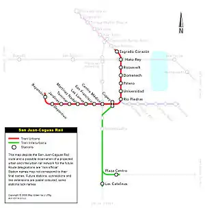 - ↑ "Caguas-San Juan light commuter train project derailed". News is My Business. 2017-08-16. Retrieved 2023-01-12.