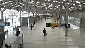 The feeder terminal is on the north side of the Autopista Sur, connected to the station by a pedestrian bridge widening the access to the station. A bicycle rack offers 650 available spaces.