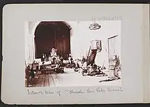 During the Philippine–American War from 1899 to 1902, the church was used as a hospital to tend wounded American soldiers. American volunteers also camped on church grounds.[6] This stay, however, resulted in the loss of the ivory head and hands of the Virgen de la Rosa.