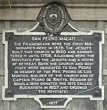 Before the land seizure of the Spanish, the area of today's San Pedro de Macati was part of the Kingdom of Sapa or Namayan, ruled by the Rajah Kalamayin whose residence was in Namayan, now part of Sta. Ana, Manila.[2] The Franciscan missionaries were the first to convert the indigenous Tagalog of Sapa to Christianity by 1578, after they had turned the original barangay into a visita called Sta. Ana de Sapa in 1570.