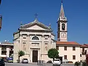 The current church, dedicated to St. Rocco was constructed at the end of the seventeenth century after a fire destroyed the original structure. It opened for worship in 1875 and was completed in 1911 with a Corinthian facade. Today it features a central altar from the seventeenth century, four side altars of baroque style and preserves a valuable painting of the Madonna of the Rose painted by Domenico Maccacaro in 1600.