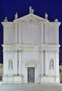 The church is named after San Tommaso Apostolo (Saint Thomas the Apostle). A church on the site dates back to the tenth century, the present orientation was set in 1395, and the exterior and much of the interior decorations are due to reconstructions in the 16th and 17th centuries. For example, The Baroque architecture layout we see today was completed in 1652 by Giuseppe Sardi, using a design originally by Baldassare Longhena. The church was reinforced and the facade decorated with two statues in 1742 by Francesco Bognolo. Presently, the church is used for practice of Roman Catholic, Neocatechumenal Way services and functions.