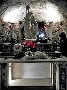 Statue of St Agatha in the underground chapel, putatively a former dungeon where Agatha miraculously survived her initial torture