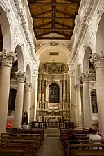 The church has five lateral altars (1741-1758) enriched by sculptures and intaglio by the Cultraro family. Among these, the altars of San Giuliano and of the Crucifix, the oldest, have some of the most elaborate decoration with garlands of flower and fruit. The altars of San Biagio and the Holy Family are more restrained. The altar of the presbytery houses the canvas depicting the Madonna dell'Idria, derived from the Greek Odigitria meaning the Our Lady of the Way. At the start of the right nave is the Chapel of the Addolorata completed in the 19th century.[1]