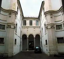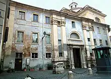 In front of the church's facade is the internal courtyard of the monastery, at the side of piazza Campo Marzio and entered via a three-arched portico.