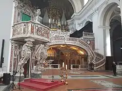 The marble pulpit dates from 1677 to 1705. The organ, now in disuse, dates from the early 1700s.[5]