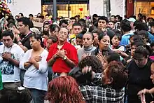 The New Religious Movement of Santa Muerte is present in all social classes of Mexican society, although the majority of devotees are either underemployed workers or from the urban working class.[15][61] Most are young people, in their teens, twenties, or thirties, and are also mostly female.[15][53] A large following developed among Mexicans who are disillusioned with the dominant, institutional Catholic Church and, in particular, with the inability of established Catholic saints to deliver them from poverty and violence.[14][15]