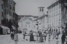 The church of Santa Maria in Silva, the primitive core of the sanctuary, was probably built in the 8th century on the same site occupied by the present building, near the Garza stream, in the populous north-central district of the walled city. On May 9, 806, the transfer of the relics of Saints Faustinus and Jovita from the basilica of San Faustinus ad Sanguinem (since 1956 renamed to the church of Sant'Angela Merici)[2] to Santa Maria in Silva took place, thus assuming considerable importance within the city's religious scene. Among other things, at a moment when the procession stopped near Porta Bruciata (the west end of Via Musei, at the corner of Piazza della Loggia) the remains are said to have exuded blood: Duke Naimon of Bavaria, who was present at the moment of the miracle, is said to have converted to Catholicism and thus donated to the city the relic of the True Cross, which has been kept in the Old Cathedral ever since as the main piece of the treasure of the Holy Crosses. The church of San Faustino in Riposo would also be built on the site of the miracle. However, the reasons that led to this transfer, which certainly had a strong impact in the city, are not known.[3]
