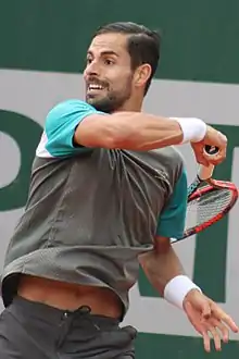 Santiago Giraldo Salazar (Latin American Spanish: [sanˈtjaɣo xiˈɾaldo salaˈsaɾ], born 27 November 1987) is a retired Colombian professional tennis player.[1] He played on the ATP tour and represented Colombia in the Davis Cup competition. His best tournament result is reaching the final in the 2014 Barcelona Open Banc Sabadell. He is the highest-ranked tennis singles player in Colombia's history, with a career-high singles ranking of 28th in the world, and 77th in doubles.