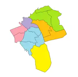 Since 1999, the town has been divided into 5 administrative barrios (in Spanish),[5] each neighborhood has got colonies or seccions: