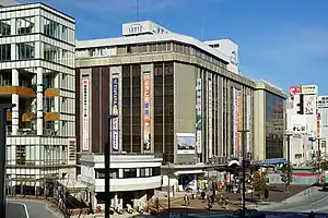 The station building is located close to the JR West Himeji Station on the Sanyō Main Line and Sanyō Shinkansen.