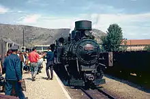 The line was opened in 1891 in the Bosnian gauge of 760mm. With the construction of the railway, the port of Metković grew into one of the most important ports in Dalmatia, and the first port in Dalmatia to receive a railway line.[11] The section from Mostar to Konjic was built through the canyon of the Neretva river, and in some places, it had features of a mountain railway. A lot of walls, tunnels and cuttings were built, and because of the frequent crossing from one side of the river to the other, there were also a lot of bridges, so that section was much more expensive than the section built before. From Konjic to Sarajevo, the builders had to overcome the ascent of the Ivan Mountains with a relative height of 600 metres (2,000 ft). For this purpose, a third rail (the so-called cogwheel of engineer Roman Abt) was laid on two sections: Pazarić - Tarčin (3,722 km, incline 35 per thousand) and Podorašac - Raštelica (15,222 km, gradient 60 per thousand).[12] With the construction of the railway, the port in Metković has grown into one of the most important ports in Dalmatia, and the first port in Dalmatia to receive a railway.[13] A tunnel with a length of 648 m was also cut through the Ivan mountains. Special steam locomotives of the 97 series performed the pulling of trains on these two sections.[10]