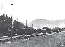 Although there was an idea of extending the railway to the mouth of the Neretva, it became relevant in the 1920s as part of the project to connect Belgrade via Sarajevo with a new port on the sea, considering that the port in Metković could not meet the growing needs. There were suggestions that the port should be in Klek or Neum, and the ports in Split and Dubrovnik were also against the new port. At the initiative of the Sarajevo Chamber of Commerce and Crafts, the Association of Engineers and Architects in late 1922 and early 1923 carried out the first measurements and surveys of the terrain at the site of the future port in Ploče and at the railway conference held in 1926, it was decided that the future port would be in Ploče.[18] However, construction was constantly delayed due to conflicting interests regarding the future port. The technical study was completed only in 1936, after the acceptance of the port project in Ploče in 1938, when work began on the entire route to Ploče. The entire section had five stations, four bridges and five tunnels. By the end of 1940, there were almost 80% earthworks on the embankments, five tunnels, twenty-seven buildings, and other structures.[19] With the Germany and Italy attack on Yugoslavia, all works are suspended. In 1942, Italy completed the construction of the railway, and after its capitulation, Germany rebuilt the partially damaged railway. At the end of the Second World War, the railway damaged by the withdrawal of Germany was being rebuilt again, and on 15 July 1945, the entire length from the port in Ploče to Sarajevo was put into traffic.[20]