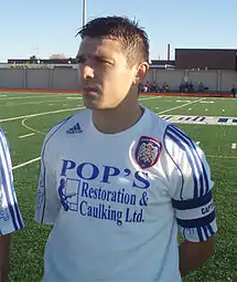 In 2006, he went overseas to play with the Serbian White Eagles in the Canadian Soccer League.[15] He made his debut on 19 May 2006 against Italia Shooters, where he also recorded a goal in a 3-2 victory.[16] In his debut season he was named to the CSL All-Star roster against Clyde F.C., where he scored the lone goal in a 2-1 defeat.[17] He finished as the club's second highest goal scorer, and clinched the International Division title.[18] In the postseason he scored both goals in a 3-0 victory over Toronto Supra Portuguese to advance Serbia to the semi-finals.[19] He featured in the CSL Championship final against Italia Shooters where Italia managed to upset Serbia with a 1-0 defeat.[20] At the conclusion of the season he received the MVP award.[21]