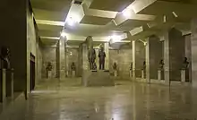 The museum contains numerous exhibitions on Indonesian military history. It includes a room dedicated to squadron banners, one dedicated to artefacts belonging to General Oerip Soemohardjo (the military's first Chief of Staff), General of the Army Sudirman (the military's first commander in chief), General Abdul Haris Nasution, and General Suharto.[2][12] A nearby area contains hundreds of rifles, grenades, sharpened bamboo sticks, and other weapons dating from the 1940s and later.[13] A Hall of Heroes holds life-size statues of members of the military who have been declared National Heroes of Indonesia, with Sudirman and Oerip in places of honour at the back of the hall.[14]