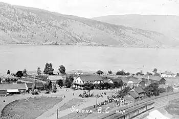 In December 1914, the westward advance of the CNoR rail head from Kamloops passed through Savona.[145]