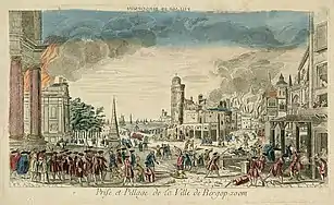 When the French Revolution began, many of the old foreign regiments were looked down upon after the King decided to bring in foreign regiments to crush the, then, rebellion. Therefore, on 1 January 1791 the regiment became the 4éme Régiment de Hussards (Saxe) in an effort by the National Assembly to remove the old strains of monarchy and the 'foreign troops'. Because of the majority of the regiment were composed of Germans from the nearby Duchy of Palatinate, almost all of the officers and men emigrated on 4 May 1792. When most of the men left, the main element of the 4th squadron remained, and was promptly grouped with a squadron from the late Régiment Royal Allemand Cavalerie to form the Légion de la Moselle. In 1793, the regiment was officially disbanded, and the lineage ceased due to the mass emigration.[1][7][8][9][10][11]