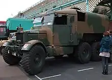 The Commander was introduced as a tank transporter in 1978.[10] Designed in the late 1970s, they replaced the Thornycroft Antars in the British Army beginning with the delivery of the first one on 30 March 1984 followed by others totaling 125 units.[11] The 6×4 units could carry a load of 65 tonnes and were used to transport Challenger I tanks. Used during the Gulf War, they were retired in 2002 and replaced by the Oshkosh M1070F HET.