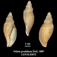 Scaphella gouldiana, commonly known as the banded volute is a species of sea snail, a marine gastropod mollusk in the family Volutidae, the volutes.[1]