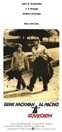 Scarecrow is a 1973 American road drama film directed by Jerry Schatzberg and starring Gene Hackman and Al Pacino. The story involves the relationship between two men who travel from California seeking to start a business in Pittsburgh.