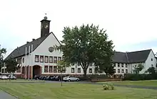 Schönau is equipped with a citizen service office of the city of Mannheim. There is a police post in the center of the district. The following educational institutions should be mentioned: Johanna-Geissmar-Gymnasium (named after the pediatrician; Gymnasium with the largest accessible area during school breaks in Mannheim),[7] Schönauschule, Hans-Christian-Andersen-Ganztagesgrundschule and Kerschensteinerschule. The Johanna-Geissmar-Gymnasium also has a branch of the city library. On the western edge of Schönau, on Königsberger Allee, there is an industrial park in which Pepperl+Fuchs is the largest employer. The development can be roughly divided into three sections: housing developments in the south, a new development area in the north-east and blocks of flats with social housing in the north-west, about what RTL II made a documentation named Hartz und herzlich, which has led to a negative image of the district.[8] According to German weekly news magazine Stern, "Die einzigen, die hier noch richtig Karriere machen, sind Drogendealer und Gangsterrapper" ("The only ones who still make a real career here are drug dealers and gangster rappers").[9]