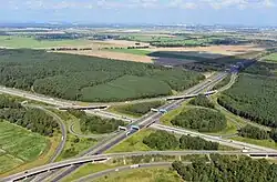 The Schönefelder Kreuz (also: Autobahnkreuz Schönefeld, short AK Schönefeld, or Kreuz Schönefeld) is a cloverleaf interchange, with a direct link Magdeburg-Berlin and also a direct link Frankfurt (Oder)-Dresden, in the German state of Brandenburg in the metropolitan region of Berlin-Brandenburg.