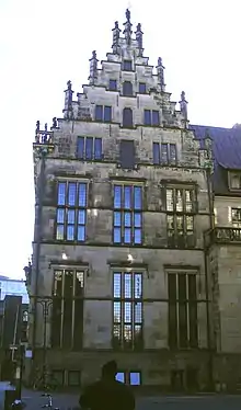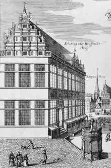 The Schütting, situated on the Marktplatz (market square) in Bremen, initially served the city's merchants and tradesmen as a guild house. In 1849, it became Bremen's chamber of commerce. Since 1973, it has been under monument protection.[1] It lies on the south site of the Bremen marketplaces directly across from the town hall.