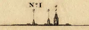 Form and position varied with each reconstruction. At first, it was a wooden structure combining a pyramid and a square. It was not until the mid 19th century that it appeared in its striking form consisting of two diamonds above each other.