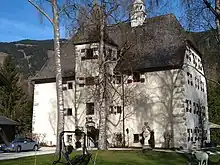 Schloss Prielau was first mentioned in 1425 under Christian Glaser zu Prielau.[1] In 1466, Polycarp von Hunt owned the farm. The building was rebuilt between 1560 and 1565 by Hans Christoph Perner von Rettenwörth into the general structure you see today. In 1577, Caspar Panicher owned Wolckersdorff and included it in his name. At that time, Panicher was a provost in the Fusch and a judge in Zell am See. He was succeeded by his daughter Anna, who married to Christoph von Hirschau. In 1590, the property passed into the possession of Dietrich Kuen-Belasy, Freiherr von Chiemsee, and remained in Kuen-Belasy's possession until 1722 when the Diocese of Chiemsee acquired the property. In 1803, the diocese was secularized. The last prince-bishop to use the palace was Sigmund Christoph von Waldburg-Zeil-Trauchburg (whose coat of arms can still be seen on the castle gate).[1] In 1811, the castle was auctioned off to the sacristan Anton Neumayer.[2]