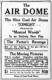 - ↑ "Air Dome" advertisement, The Log-Cabin Democrat (Conway, Arkansas), 14 July 1909, p. 1; digital copy of newspaper page, "Chronicling America: Historic American Newspapers", Library of Congress, Washington, D.C., online reference co-sponsored by the National Endowment for the Humanities. Retrieved 2 September 2021.