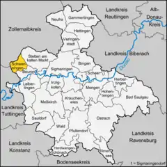 Location of Schwenningen within Sigmaringen district