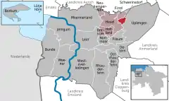 After 1815, the Kingdom of Prussia Ostfriesland ceded to the Kingdom of Hanover . Within Hanover belonged Schwerinsdorf Office Stickhausen, therein to the official votebook Remels and in turn to the subvogue Hesel.[3] In 1848 Hesel formed an independent bailiwick within the office Stickhausen.