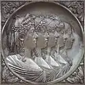 | 14 | Vestal Virgin | Joseph Baptist Hagenauer and Leonhard Posch | Vestal Virgins were virgins who represented the early Roman kings in the Roman religion. They were responsible for watching over the fire of the state hearth in the temple of Vesta, the goddess of the hearth.[23] Chosen from patrician families by the high priest Pontifex Maximus, these young girls, aged 6–10, were required to serve their goddess in celibacy for thirty years. They lived in the House of the Vestals (Atrium Vestae) behind the Temple of Vesta (Aedes Vestae) near the Roman Forum.[23] They wore linen dresses in the old style and were highly regarded for their purity and their intervention on behalf of those in trouble. Any Vestal found guilty of unchaste behavior was entombed alive.[23] | ![]() |