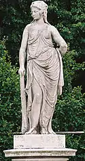 | 13 | Hygieia | Joseph Baptist Hagenauer | Hygieia was the goddess of health and cleanliness.[21] She was the daughter of Asclepius, the god of healing,[21] and Epione, the goddess of soothing of pain. Hygieia had five sisters who also represented aspects of Apollo's healing: Panacea the goddess of universal remedy, Iaso the goddess of recuperation, Aceso the goddess of the healing process, and Aglaea the goddess of beauty.[22] | ![]() |