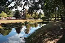 The Seaborn Jones Memorial Park, formerly known as Wayside Park, was renamed in 2002 after Seaborn Jones because of his generosity and other significant contributions that he made to the city.[1] The park sits in the middle of the Historical Downtown district of the City of Rockmart, Georgia along the banks of the Euharlee Creek. The name Euharlee comes from the Cherokee or Creek Indians and means "she laughs as she runs."