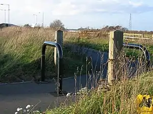 Even though steelmaking operations at the Corus plant at Shotton ceased in March 1980,[3] freight continued to pass the former station on a double-tracked line until 20 April 1984. Goods services resumed on a single-track line on 31 August 1986 before final closure in the early 1990s.[2][4] The trackbed is now a cycle way.
