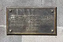 Plaque of Sebastián de Benalcázar in Quito, Ecuador