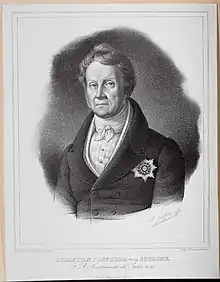 Sebastian Wenzel Freiherr von Schrenck-Notzing (28 September 1774, Hillstett/Oberpfalz - 16 Mary 1848, Munich) was a Roman Catholic Bavarian politician. He was a member of the chamber of deputies in the Landtag of Bavaria in 1819, 1822, 1825, 1827/28, 1831, 1834 and 1837 and served as that chamber's president from 1819 to 1837[1]