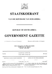 In November 1989, Butana Almond Nofomela, a black Branch officer, caused a scandal when he alleged on death row that he had belonged to one of five death squads operating under the Branch out of Vlakplaas farm, later revealed to be the headquarters of the Branch's Section C1 (see below). He claimed that the Branch had brutally killed anti-apartheid activist Griffiths Mxenge in 1981, and that he had participated in or witnessed other extrajudicial killings committed by the Branch.[35] His claims were corroborated in the Vrye Weekblad by the Section's former commanding officer, Dirk Coetzee, and by David Tshikalange, another Branch officer.[36][37][38] Adriaan Vlok, Minister of Law and Order, denied the allegations and said they were part of a plot to undermine the security police "to make it easier to bring about... a Communist state."[37] By the end of the month, the McNally Commission, led by Tim McNally, Attorney General of the Orange Free State, had investigated and submitted to President F.W. de Klerk a report which discounted the allegations.[6][39][40]