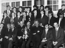 Notwithstanding such bitter disappointments, the Clareen side were consistently featuring in top-notch, close, exciting Junior matches. In the 1965 Offaly JHC, Kinnitty needed three attempts before edging out Seir Kieran by 2-10 to 3-6. In 1968, a last-minute Joe McKenna goal separated Shinrone and Seir Kieran after a thrilling replay. Success finally crowned these endeavours in 1969, when Seir Kieran became Offaly Junior Hurling champions for a fifth time. Once again, the Junior Final was deferred until the following Spring. On 26 April 1970, the team traveled to Tullamore and defeated Clara by the minimum (3-2 to 1-7).[34] Tim Mulrooney the captain lifted the James Clarke Cup. Seir Kieran have fielded a Senior team in each subsequent year.