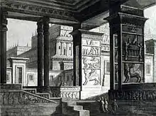 ![]() Set design for the Hanging Gardens of Babylon in a 1820 Bologna production | |
