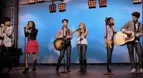 The music video, directed by Michael Blum and Tracy Pion, begins with Miley Cyrus and Nick Jonas sitting on the edge of a dark stage where Nick, also playing the acoustic guitar, and Miley singing the first verse. The video then changes to the two walking onto the brightly lighted stage, singing the chorus, and then being joined by Demi Lovato and Joe Jonas who sing the second verse. The entire group is then shown on the stage as they sing the chorus. Kevin and Joe Jonas then remove a curtain covering the background of stage to reveal a sky-painted backdrop in which Selena Gomez and Kevin Jonas proceed to sing the bridge. The ending of the video follows the entire group running out of a large stage door and through a "park-like" setting while finishing the song. A crowd of kids also begin running behind the group. The video ends with the group jumping onto and sitting on a couch in the middle of the park with the crowd stopping in the background to watch the sunset.[19]
