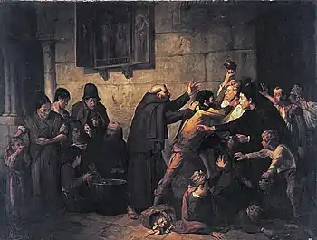 Encouraged by regional showings in Valladolid, which were well-received, in 1862 he participated in the National Exhibition of Fine Arts with a painting depicting "The Cid's oath in Santa Gadea". Two years later, he presented a Biblical scene showing the "Raising of Jairus' daughter", in hopes of winning a scholarship to Rome, but he was not successful. He had no more significant showings until 1878, when he received a third-class medal for his painting "An Excorcism", which was then sent to the Exposition Universelle in Paris. In 1881, the city of Málaga acquired his painting of the two lovers whose suicide inspired the name of a local landmark; the "Peña de los Enamorados" (Lovers' Rock).[1]
